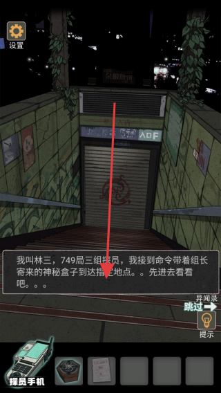 2、游戏剧情中,扮演749局三组线员林三,阅读文字,推进剧情发展。