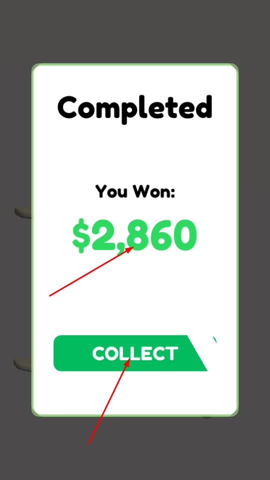3、成功通关后,界面弹出Completed提示,显示奖励金额如$2,860,点击绿色COLLECT按钮领取奖励,推进后续关卡。
