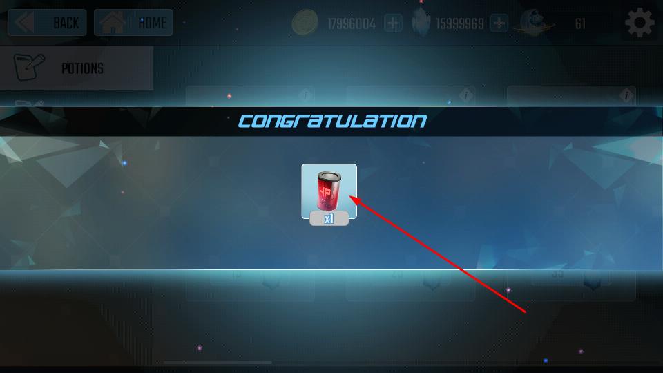 3、购买成功后,界面弹出CONGRATULATION提示,获取对应治疗药水如×1,用于战斗中恢复生命值。