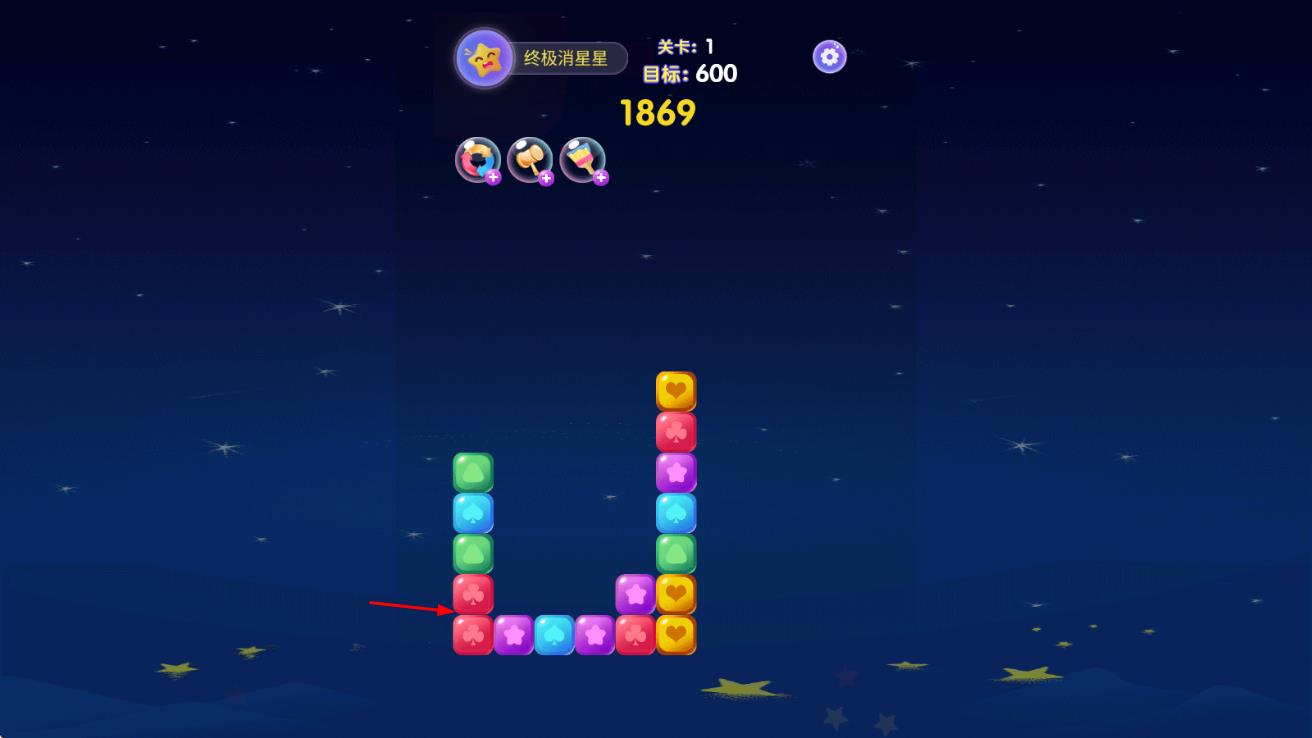 2、在消除过程中规划消除顺序,优先连接数量更多的同色星星触发连招,利用连锁反应消除更多星星提升得分倍数。