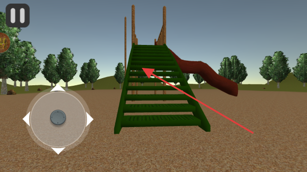 3、进入游戏场景,操控角色左侧摇杆控制移动,向绿色滑梯区域探索,触发剧情,体验恐怖玩法。