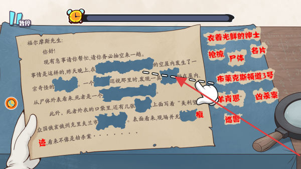 2、对话嫌疑人找疑:与案件相关的嫌疑人进行对话,耐心倾听陈述并记录关键信息,通过追问、比对等方式找出话语中的矛盾与疑点,将这些疑点作为解谜的重要突破口。