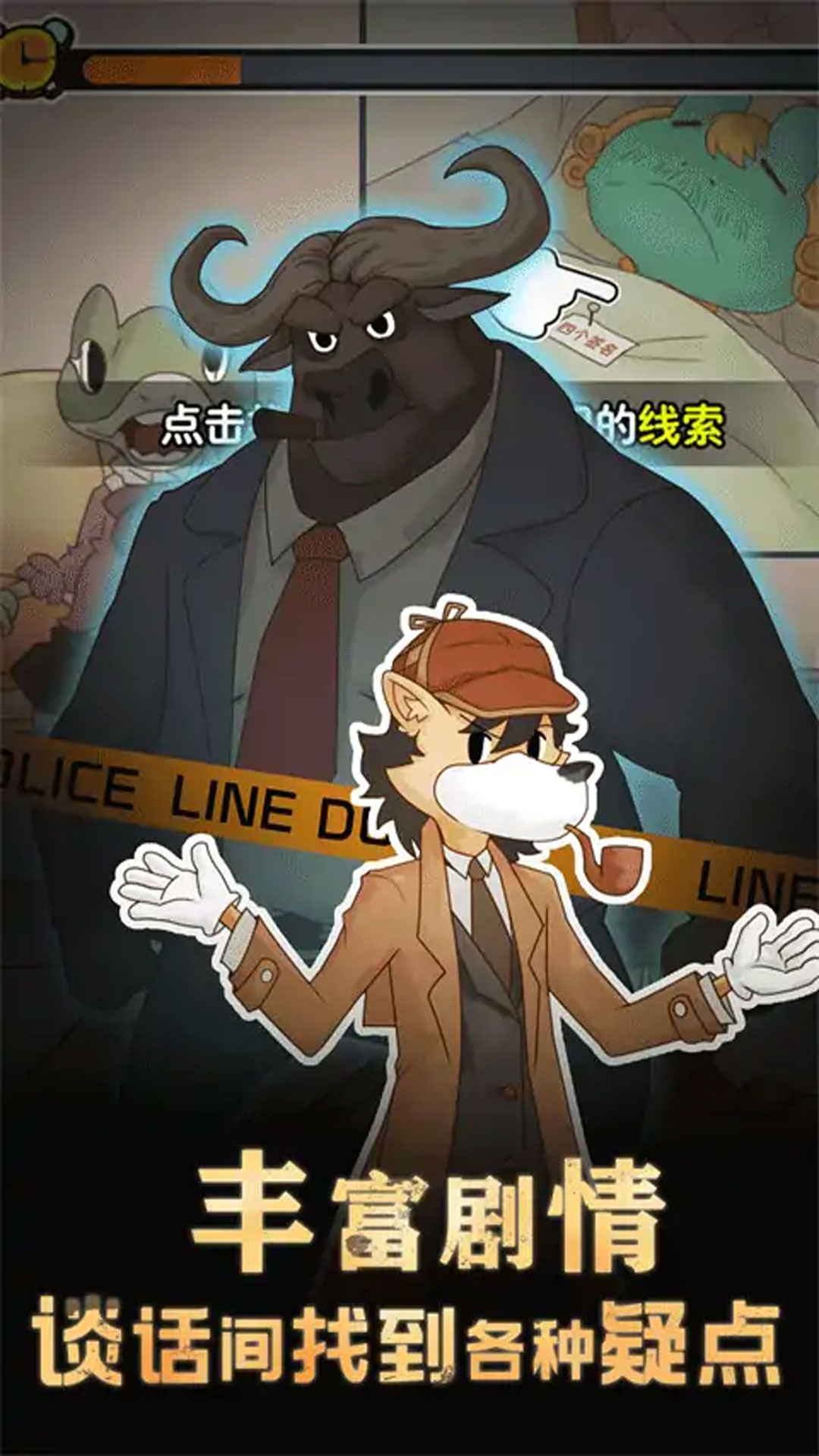 1、化身侦探探案:玩家以侦探身份接手各类疑案,了解案件背景与相关人员信息,明确调查方向,在探案过程中保持理性与客观,为后续的对话与推理奠定基础。