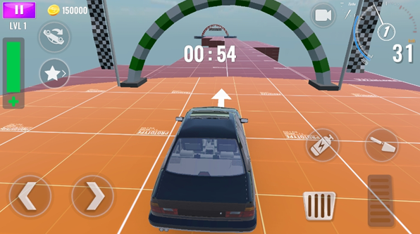 2.通过进入到车库里面挑选合适的汽车,来开启模拟驾驶汽车进行闯关,利用操控按键来完成破坏撞击给汽车造成物理伤害的目标任务。