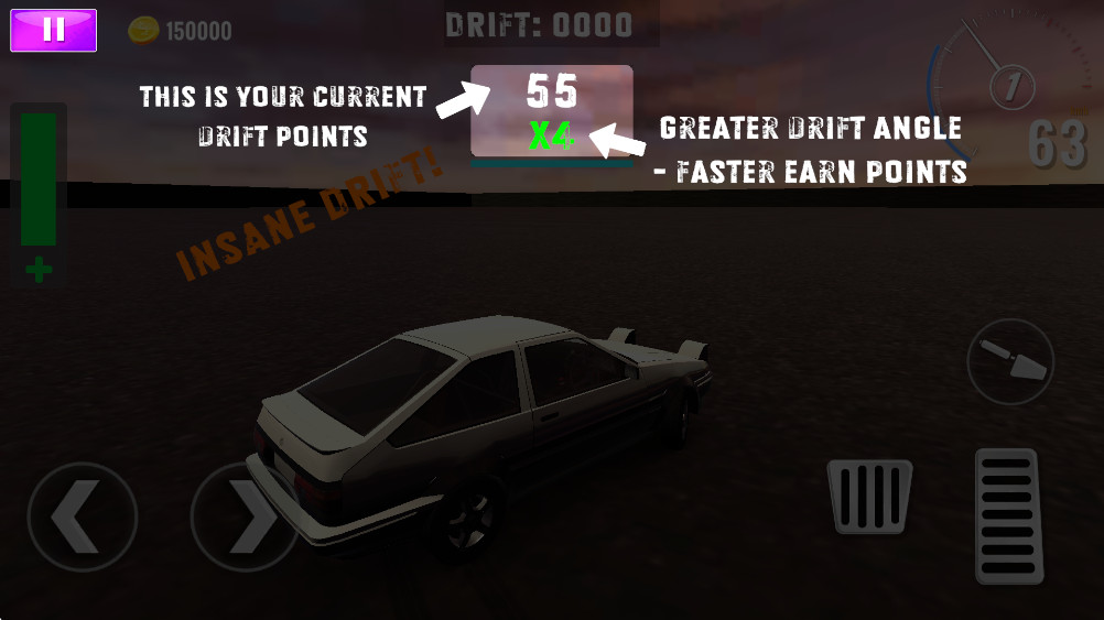 3.在闯关的过程中玩家还可以去使用里面提供的油门与刹车,来移动汽车前进完成目标任务获得金币奖励,使用金币购买新的汽车。