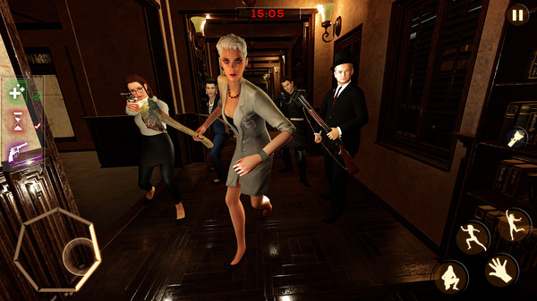 3、在室内场景中,依据指引寻找目标如墙上圆形装饰,利用移动与动作按键规划路径,借助道具应对潜在威胁,在限时内完成探索任务,查看游戏进程。
