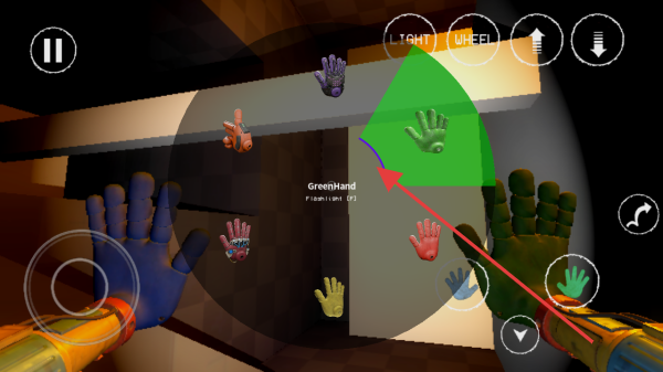 2、遇到手掌收集环节,瞄准绿色手掌GreenHand等目标,点击对应颜色按钮如绿色手掌键 ,收集道具,推进关卡。