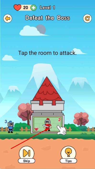 2、战斗时,按提示点击房间派遣士兵,通过叠加士兵提升攻击力,对抗敌人。