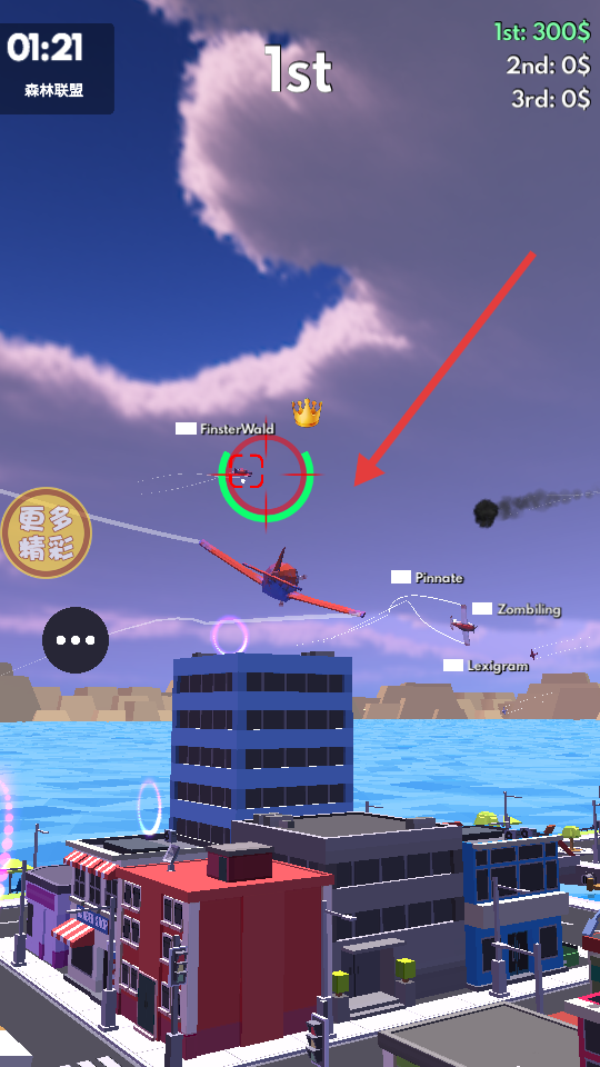 4、多模式挑战:生存模式要求在限定时间内击落足够敌机,竞速模式挑战环形赛道最快圈速,战役模式包含30个连贯的剧情任务。