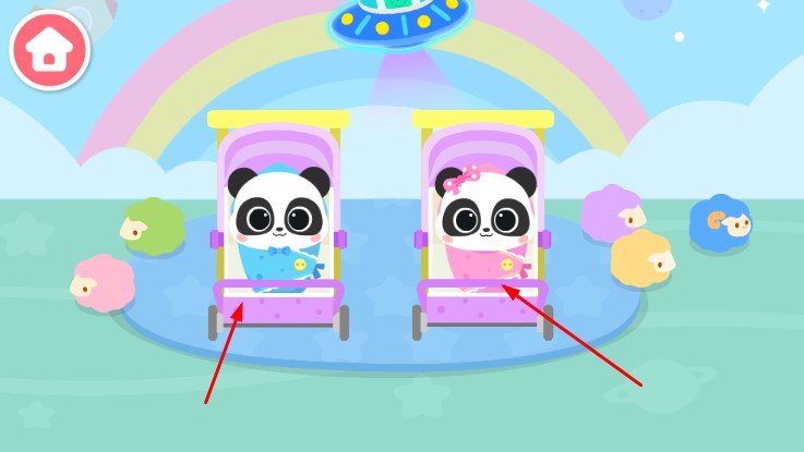 1、点击主界面,点击按钮开始,选择熊猫宝宝,进入照顾流程。