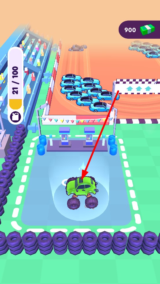 2、返回基地,停在加油场内,会自动加油,加满后即可继续碾压车辆,持续游玩。