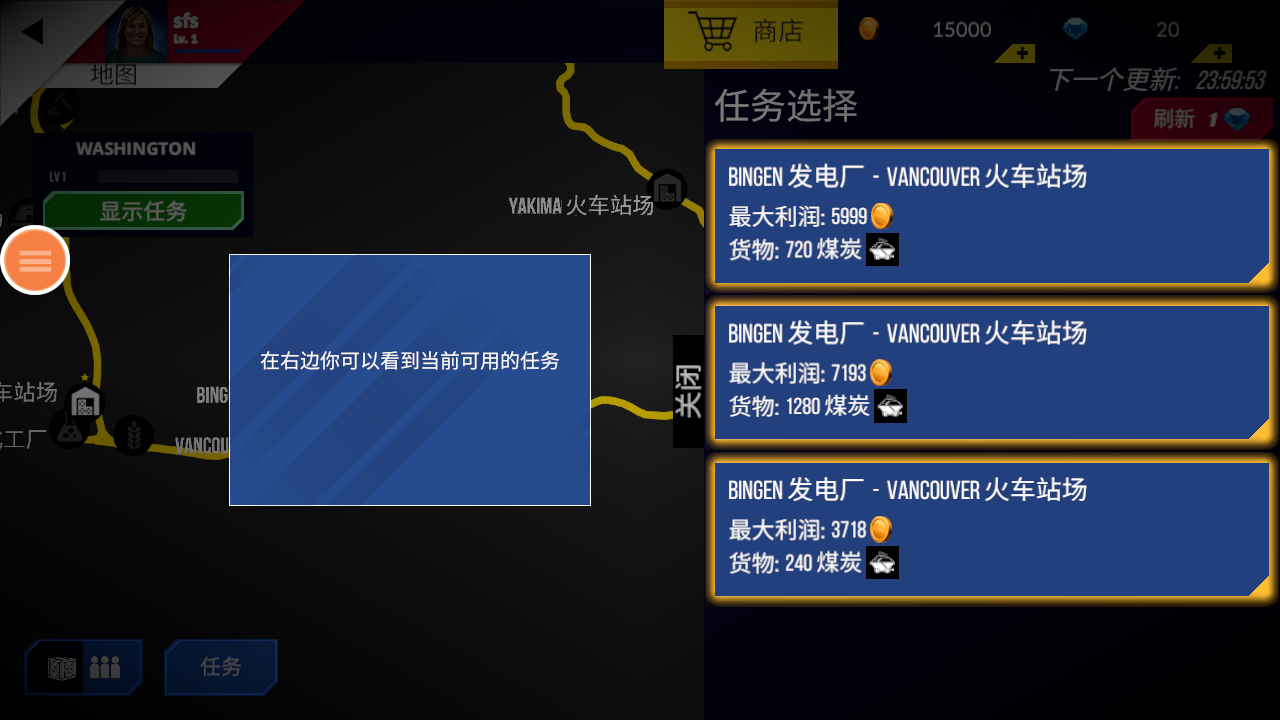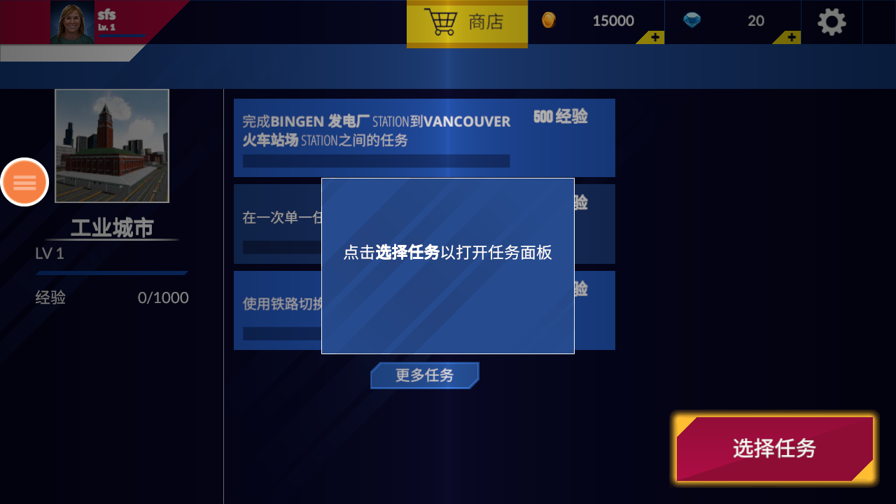 3、沿指定航线行驶至终点站点,精准停靠完成任务,获取奖励解锁更大型的火车与复杂的运输路线,提升驾驶技能。