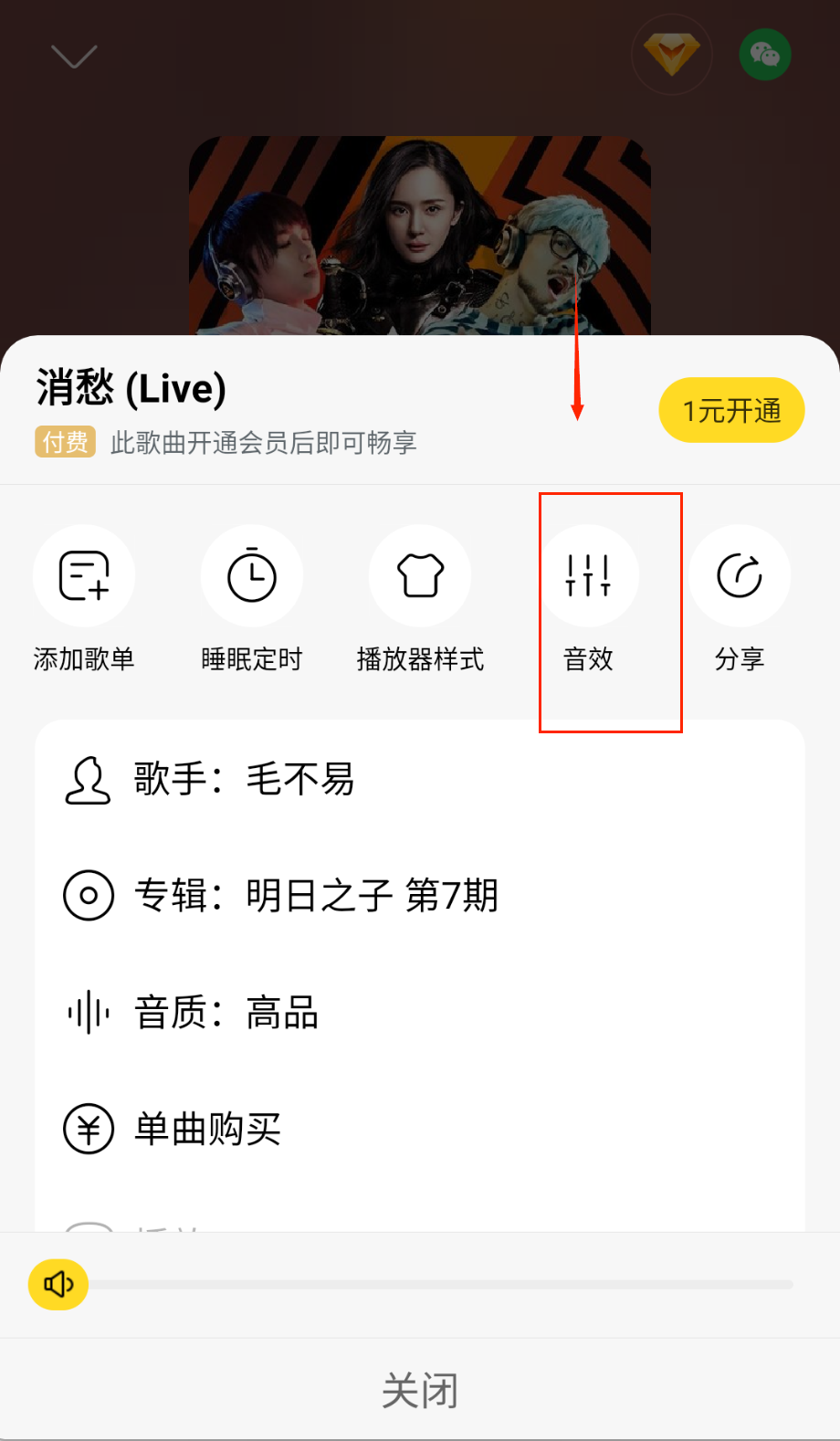4、收听音乐时别忘了试试不同的音效设置,特别是DJ版的歌曲,选择合适的音效能让节奏感更强,获得更棒的听觉体验哦。