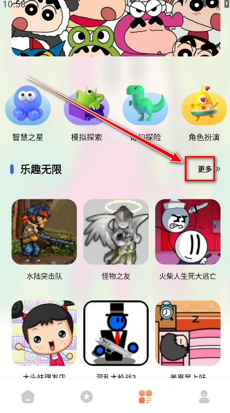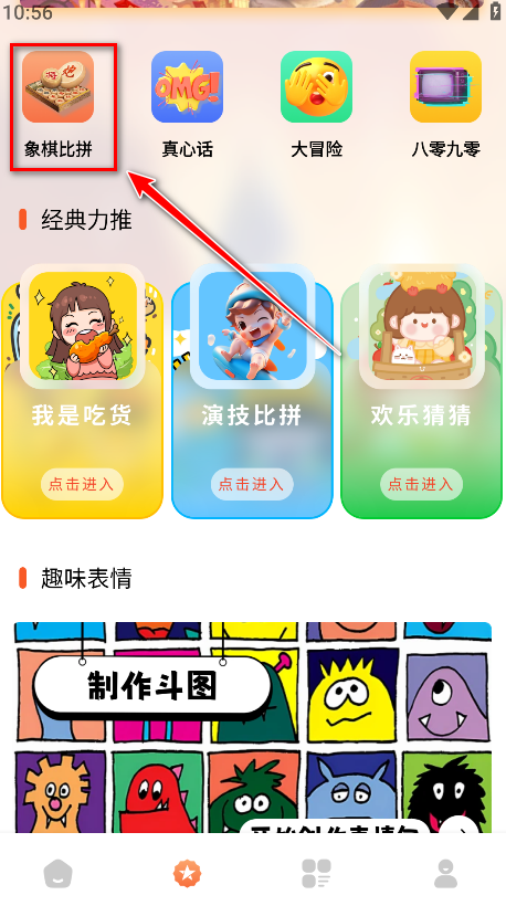 2.可以看到这一板块有着最新的小游戏、经典力推小游戏、趣味表情、搞笑表情、精选头像、最新壁纸等内容。