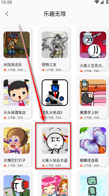 7.会看到标着人气值的小游戏,在这里小编以点击火柴人钻石大盗游戏为例。