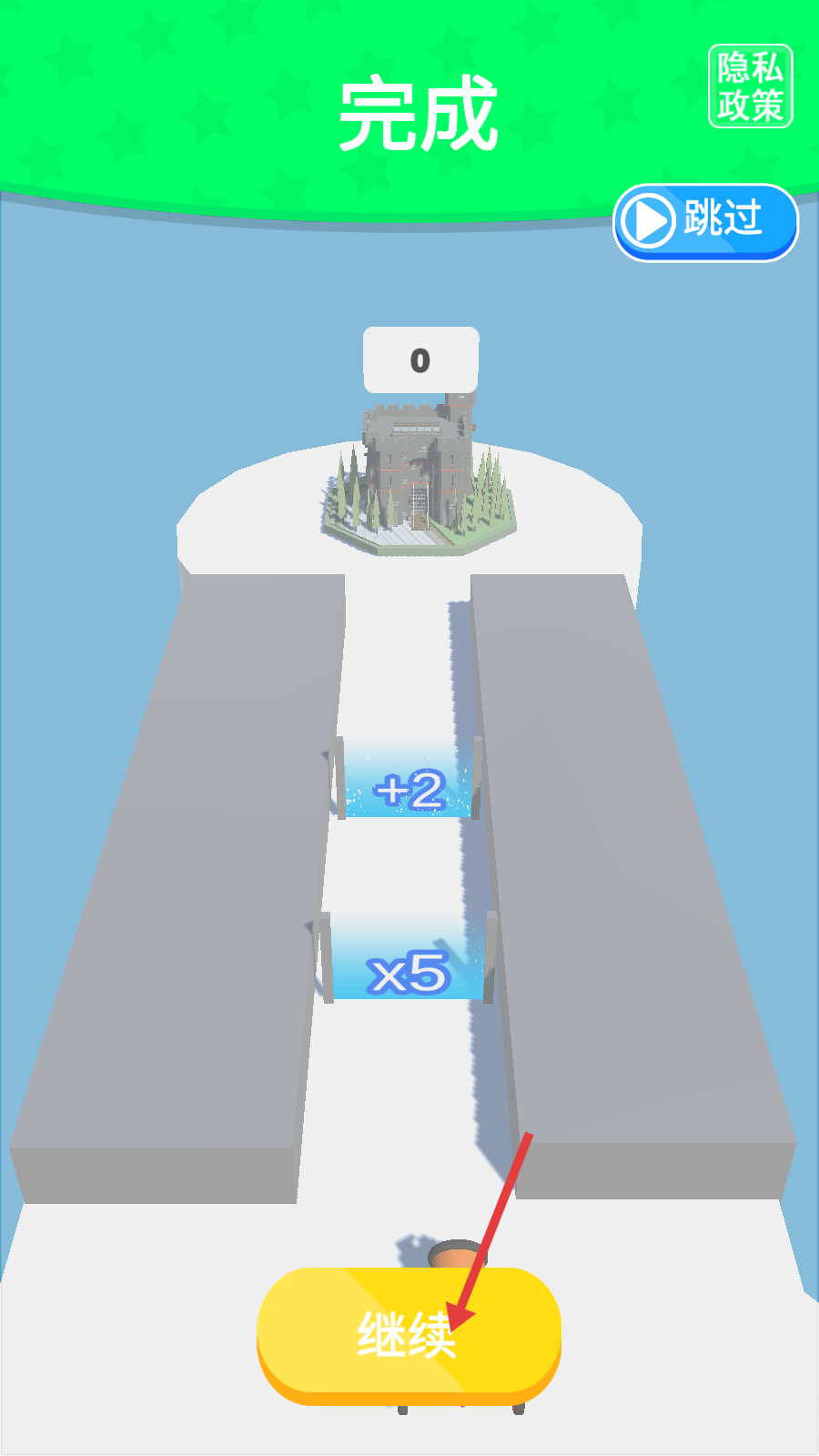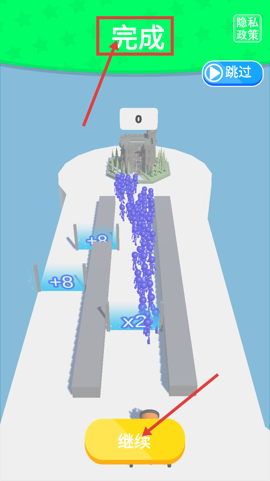 4、成功冲击城堡后,界面显示【完成】时,点击黄色【继续】按钮,即可完成关卡并进入后续环节。