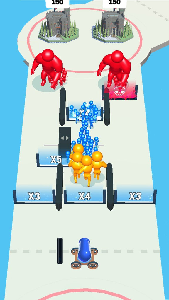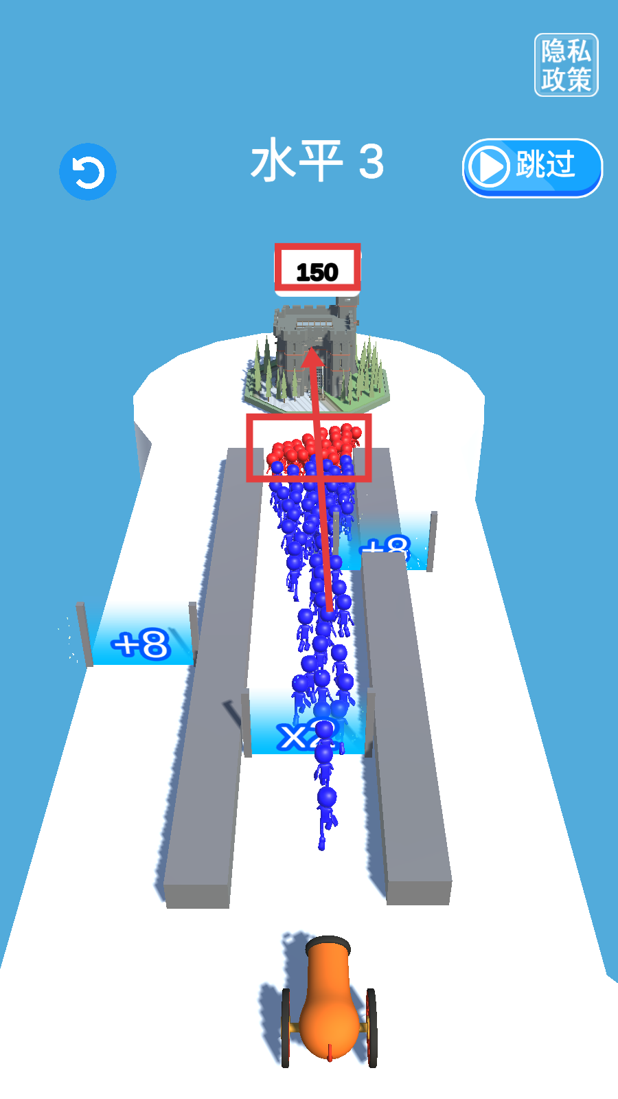 2、在【水平3】关卡里,操控单位优先通过路径上的【×2】增益区域,使单位数量翻倍。