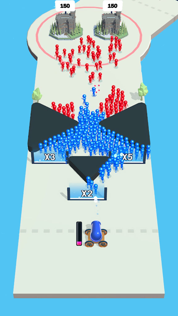 叫我刘三炮是一款策略性休闲闯关小游戏,用户扮演蓝色阵营指挥官通过发射大炮将火柴人送入增益大门壮大队伍。该手游采用红蓝对抗机制需要抵挡敌人进攻守卫基地同时计算运用各种增益效果。关卡设计独特障碍布局和增益位置各不相同考验战术规划能力。俯视视角呈现亮丽画面火柴人变身场面震撼带来独特视觉体验。玩法融合策略与休闲元素每关经过精心设计确保新鲜感。战斗前需观察地形规划路线灵活调整发射角度突破防线。随着关卡推进难度逐步提升带来持续挑战乐趣操作简单但策略深度十足适合喜欢动脑的用户享受对抗乐趣。