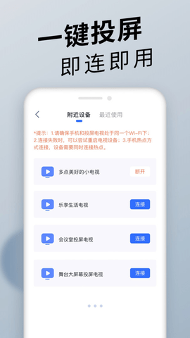 手机TV投屏让设备中的内容轻松投屏到大设备上不管是影视、手游、办公内容都可以让各位感受到视野清晰的快乐,为生活中观看的事物更加的清晰,还自带多种智能工具为用户带来方便!