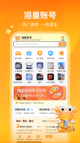 螃蟹账号app是手游账号交易平台。该平台拥有海量手游账号,用户既可以买账号也能卖账号。平台提供专业的账号估值服务,依托海量数据帮助精准估价,让用户可以放心购买。对这款软件感兴趣的朋友,欢迎来下载尝试。