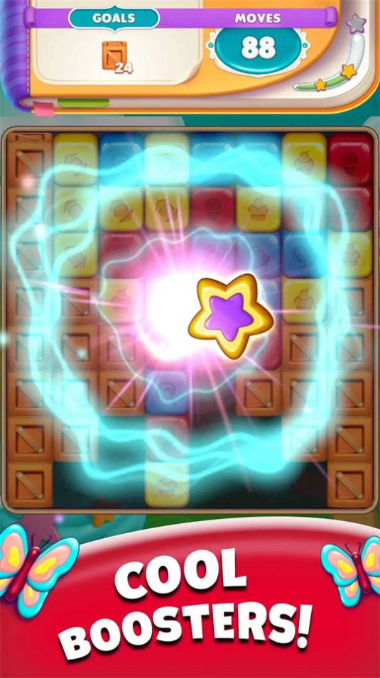 1、卡通粉碎爆炸匹配里面充满想象力的卡通图形风格,创造了一个丰富多彩的游戏世界。