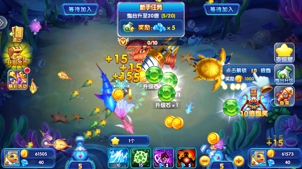 4.做任务升级炮台,不断强化装备,保证每条鱼都可以精准打击。