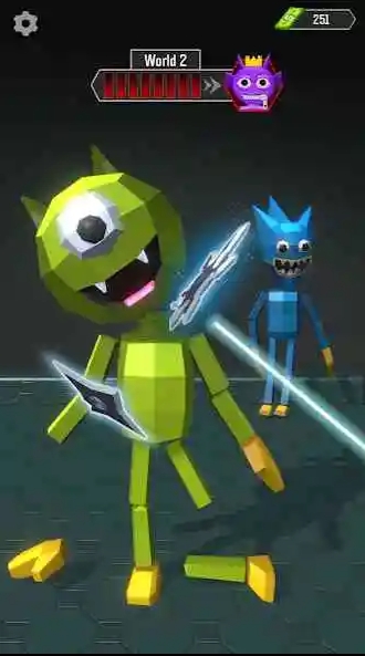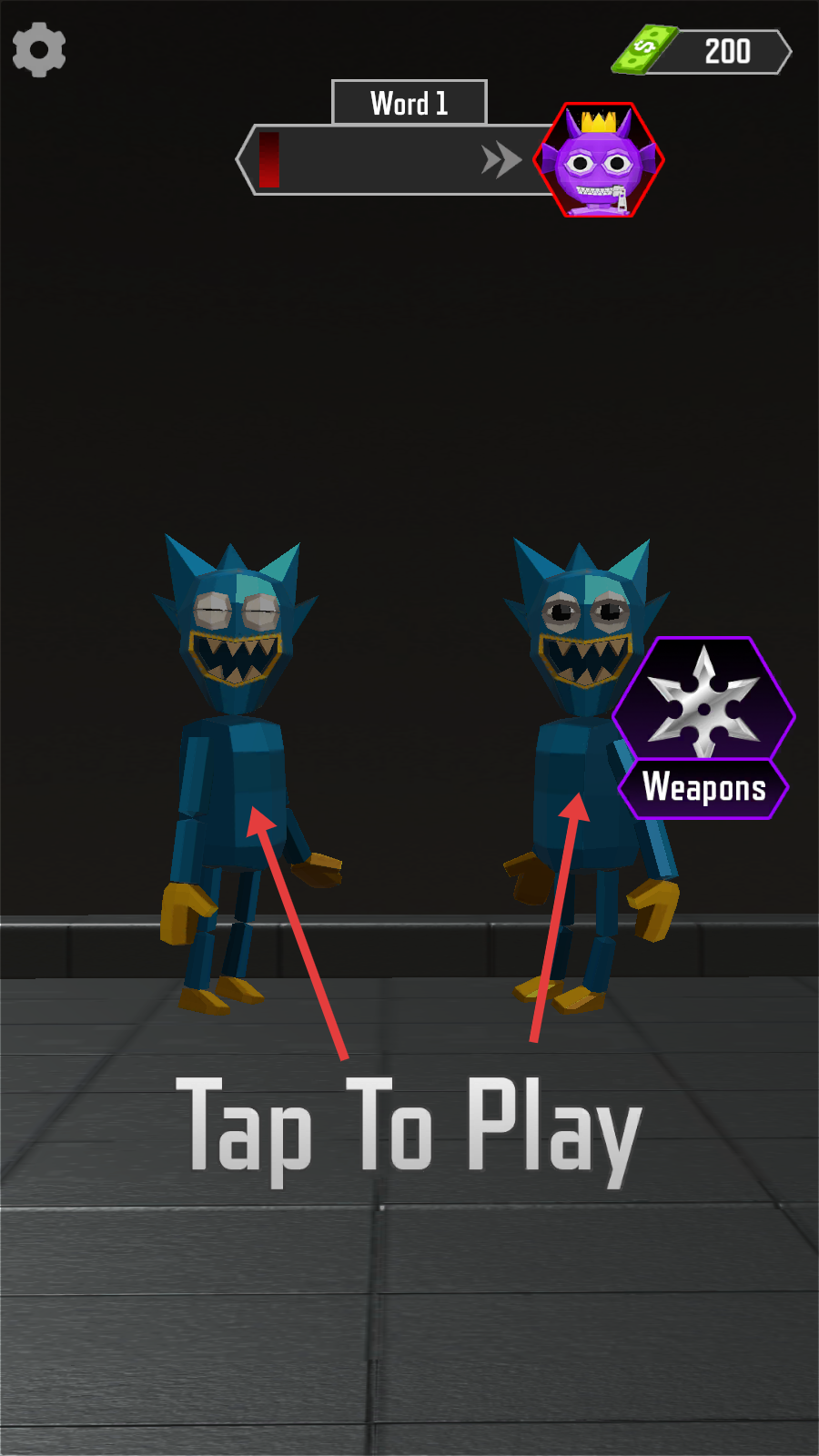 2、点击【Tap-To-Play】,进入与蓝色怪物的对战场景,准备使用选定的武器发起攻击。
