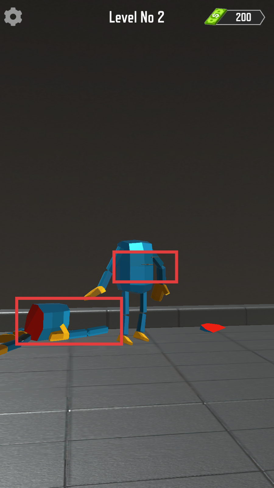 3、在【Level-No-2】关卡中,操控武器击败蓝色怪物,注意观察怪物状态,持续输出直至其被击倒。