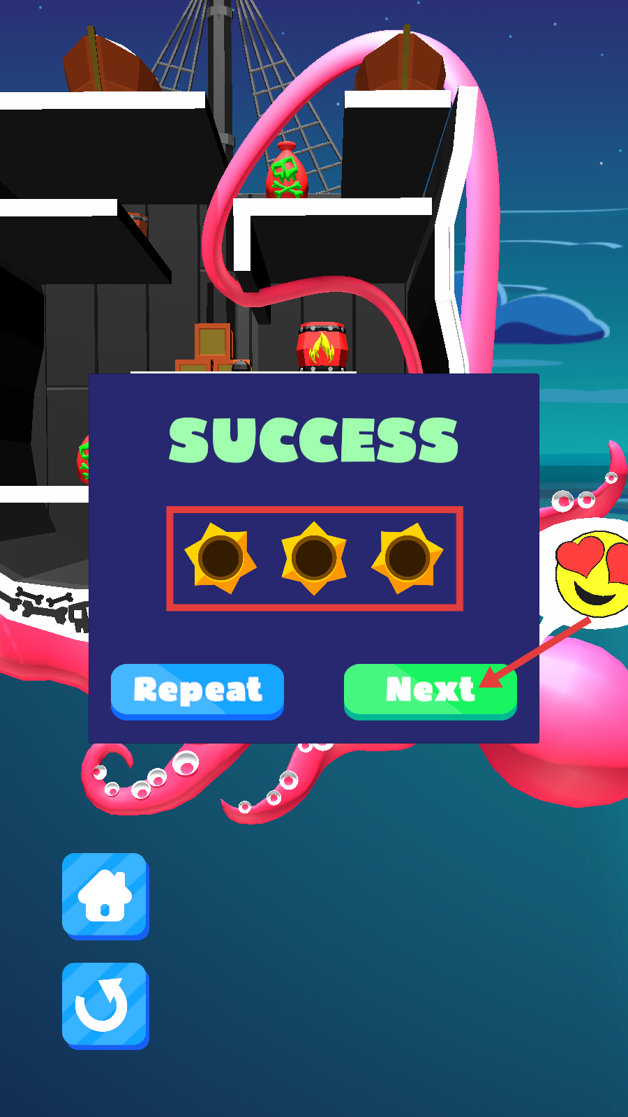 3、移动触手过程中,要避开【骷髅-瓶子】与【火焰-木桶】这类危险物品,合理规划触手的移动路线。
