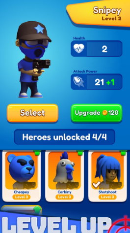 2、当你有足够的金币时,强化你的武器威力,加快子弹交换的速度,使用新的角色来解锁下一个角色。