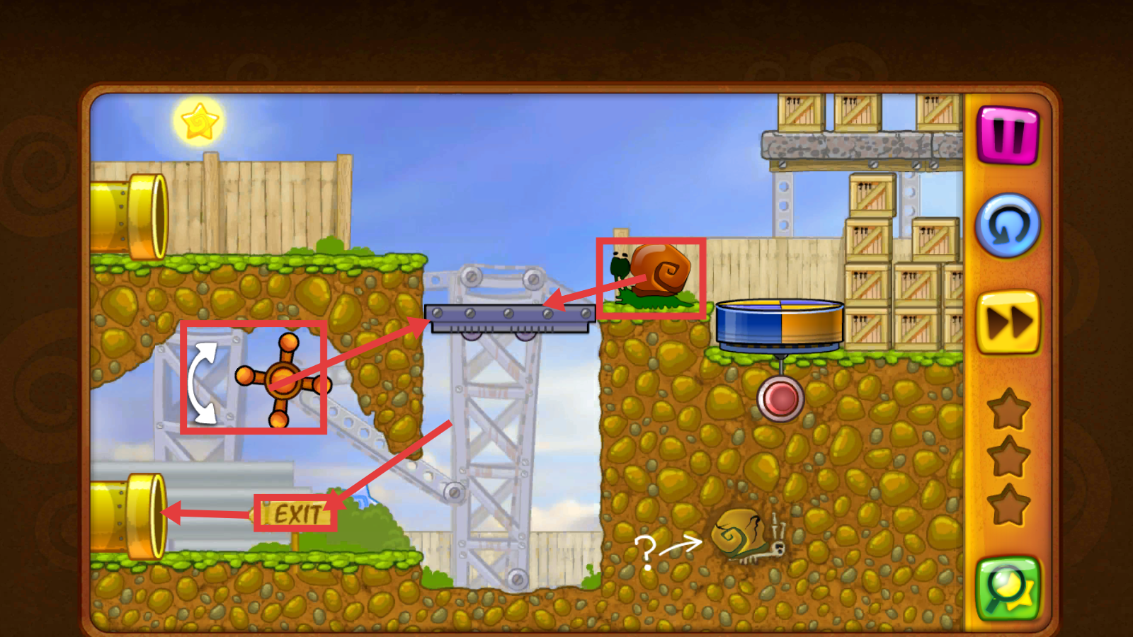 4、控制蜗牛自动前进,需协助避开障碍陷阱,确保到达终点。观察环境预判风险,及时操作考验反应。