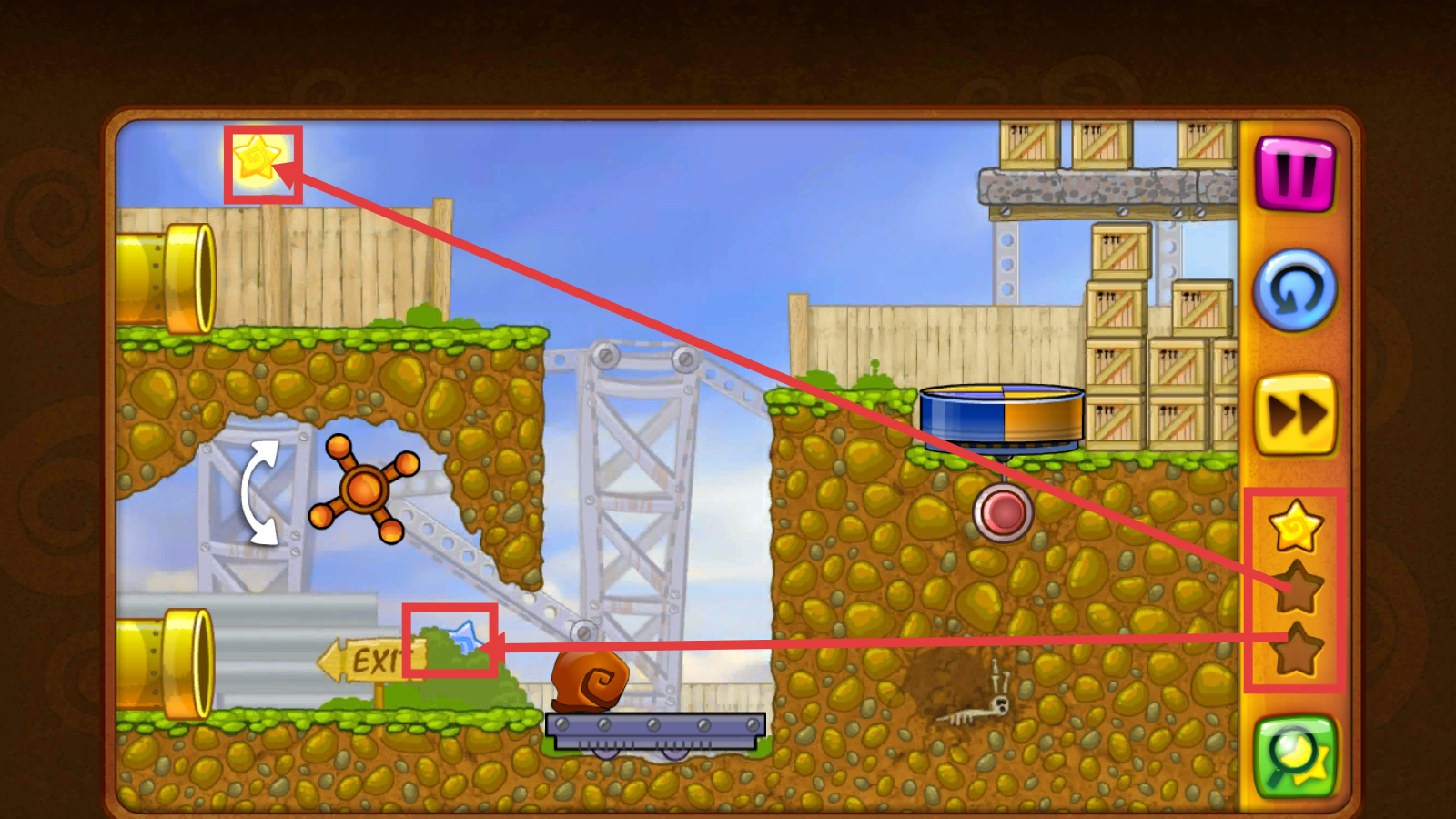 3、蜗牛移动过程中,引导其靠近【关卡星星】并完成触碰,每关收集全部星星是获取高评价的关键条件。