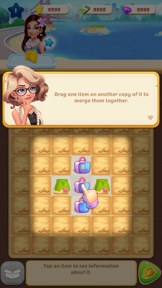 5.能够合并的物品非常多,拖动所有物品进行合并,完成任务。