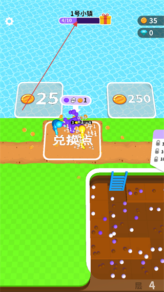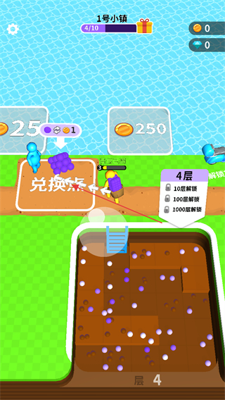 4、积累足够资源和金币后,解锁更高层挖掘区域,或助力小镇建筑解锁。