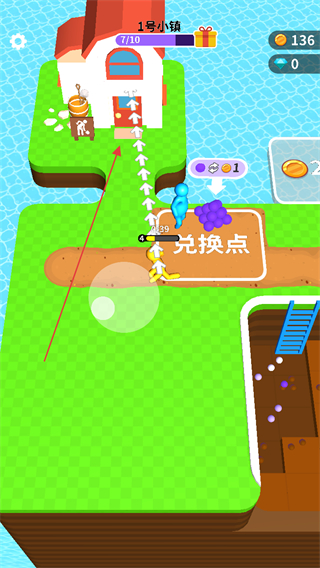 2、带着收集的资源到达地面兑换点,点击进行资源兑换,获取金币。