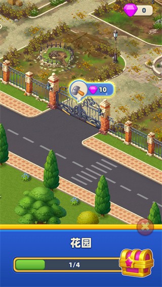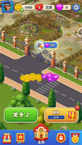 从初始简单区域开始,随着闯关进度推进,不断解锁新区域并进行装饰,见证整体场景的美化过程。