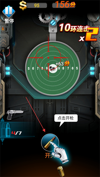 3、射击过程中,瞄准靶心,争取打出高环数,获取更高分数,触发如10环连击x2效果。