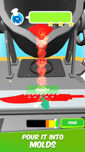 4、锻造过程中关注进度条,完成金属锻造最后环节,提升锻造熟练度,获取更高星级评价,推进游戏进程。