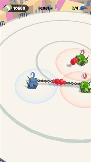 2、瞄准攻击对手:在战场中锁定敌方坦克,调整瞄准角度,发射橡胶手套精准击中对手,利用冲击力将其向战斗台边缘推送。
