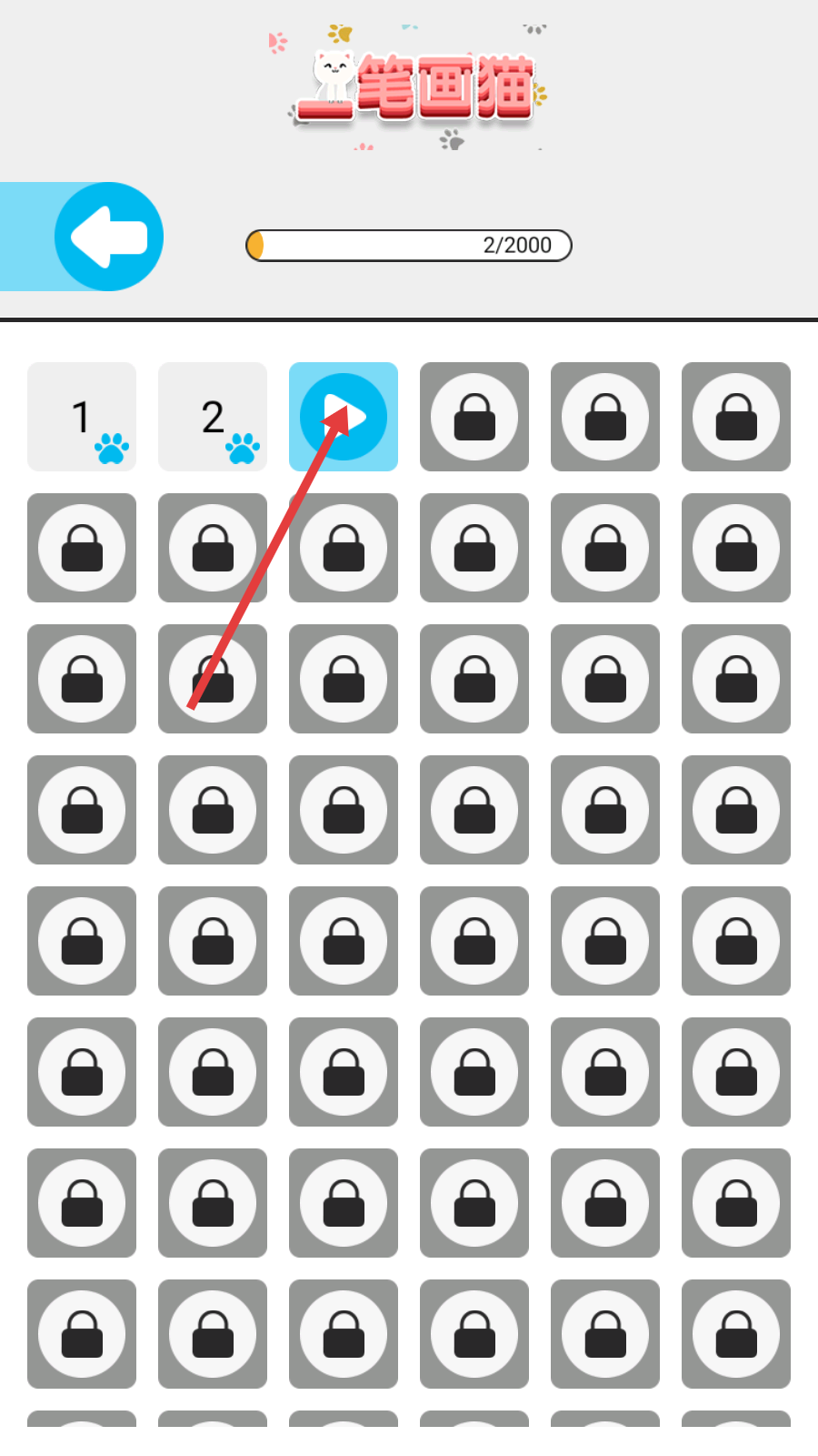1、点击【笔画猫】关卡列表中的播放按钮,进入可挑战关卡,开启笔画解谜的游戏进程。