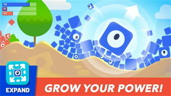 3、合理选择和使用不同技能屏幕下方图标,提升蓝色方块的分裂效果和攻击能力。
