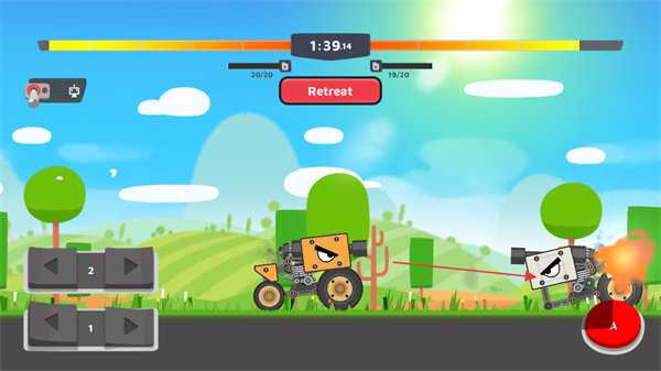 4、尽量在倒计时结束前,将敌方战车生命值降至更低,当敌方生命值耗尽时,即可获得胜利。