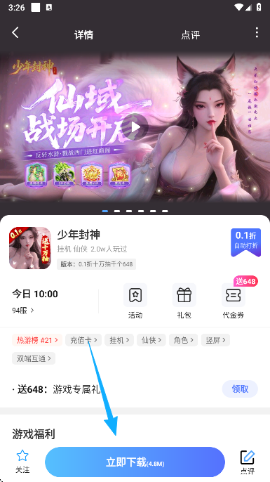 3、进入游戏详情页,可以点击立即下载开始游玩