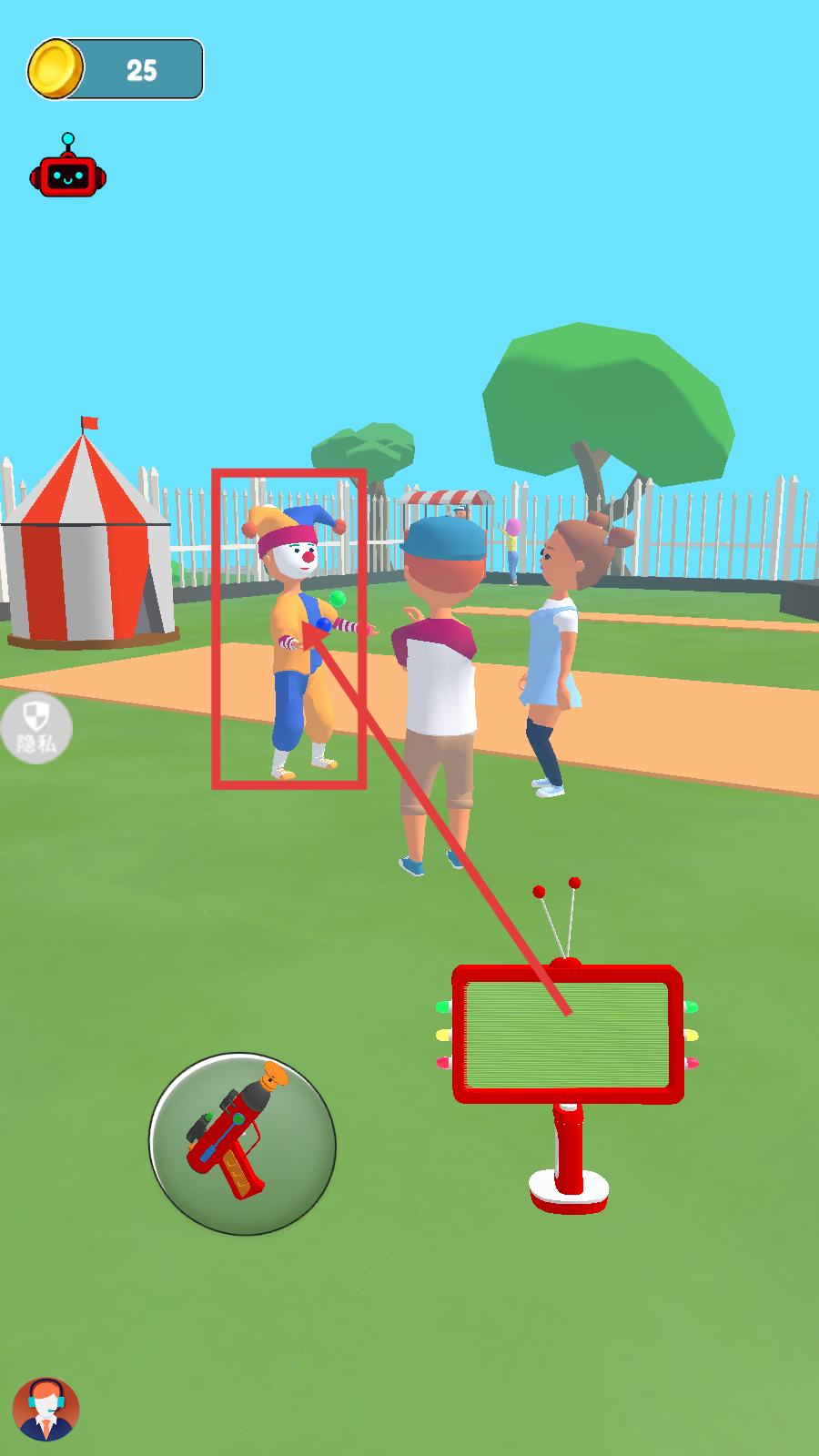 2、在游乐园场景中,用扫描仪识别【小丑】,揭露其隐藏身份,为后续战斗做准备。