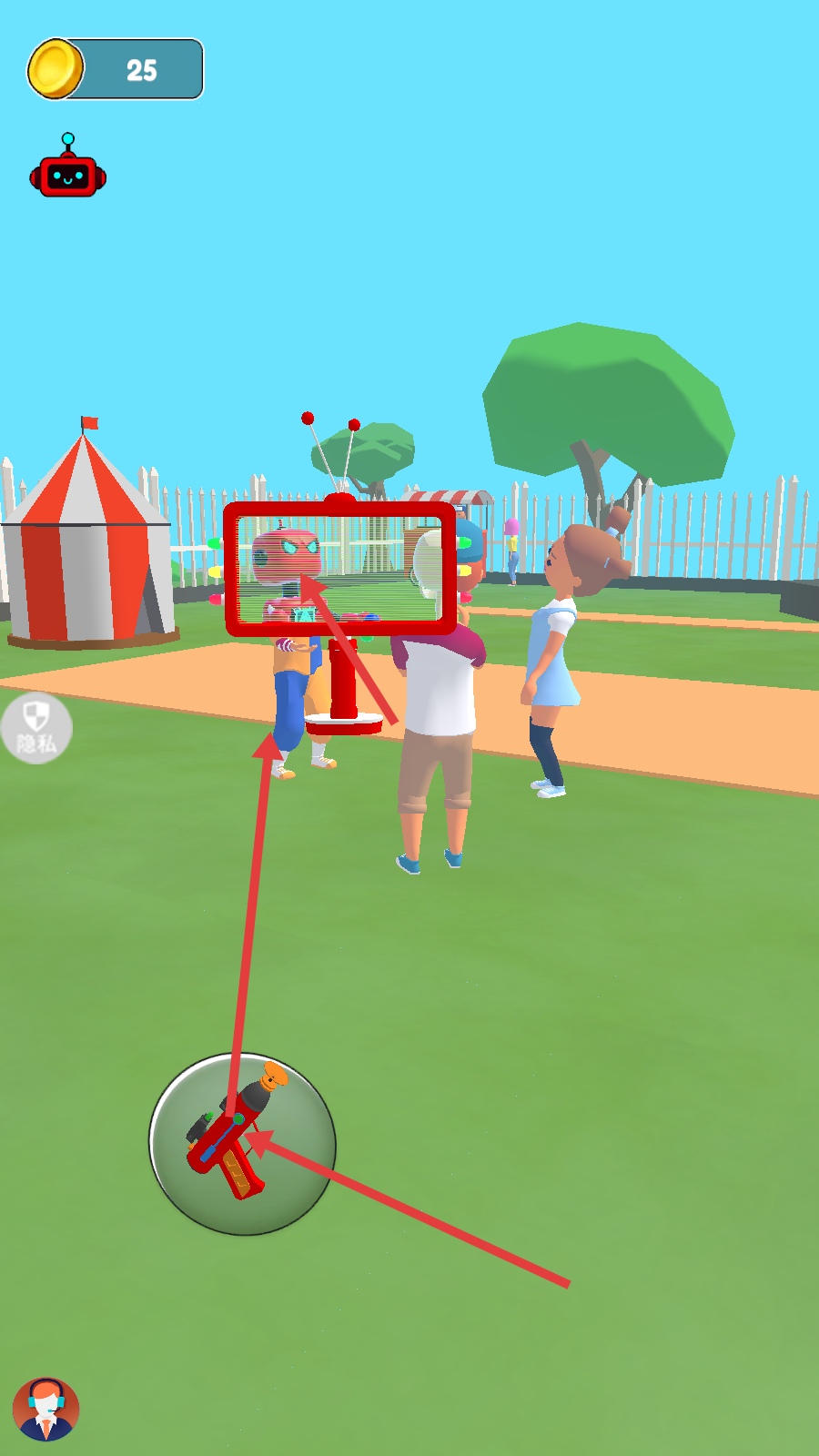 3、识别出机器人后,使用【武器】发起攻击,精准打击目标,推动游戏进度。