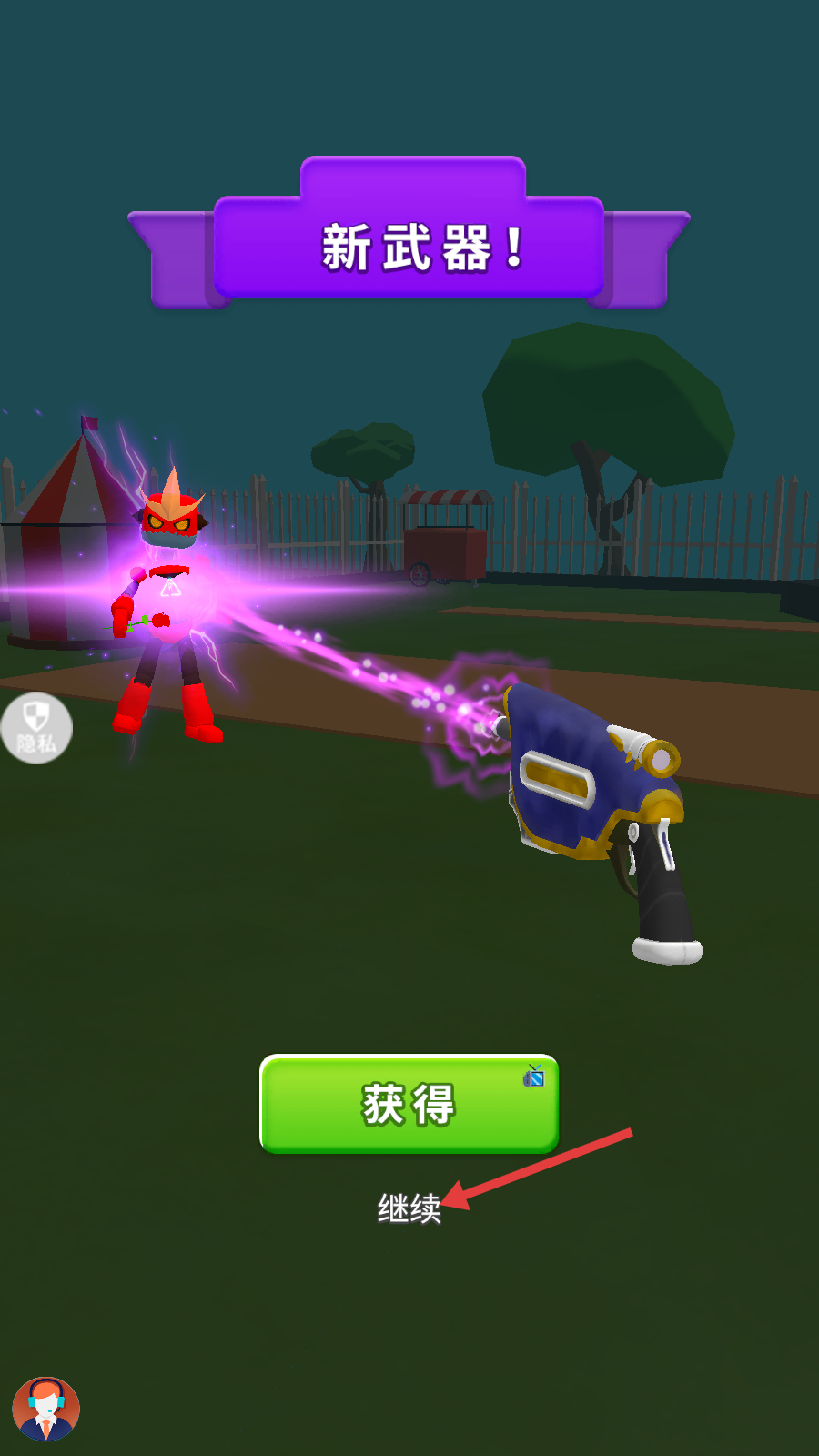 4、获得【新武器】后,点击【继续】,可借助新武器提升战力,继续挑战后续关卡。