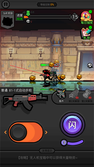 3、推进到第02关,瞄准敌人与金币,保持射击节奏,高效清怪并捡取资源。