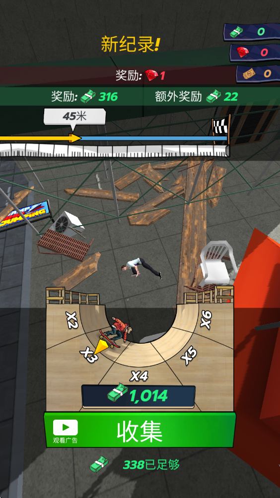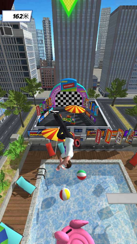 3.看看你能够飞跃多少米,越远得到的奖励越多。