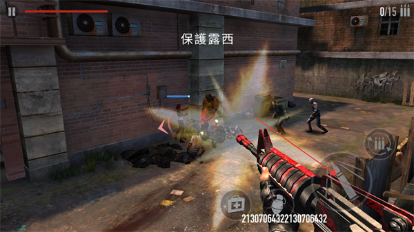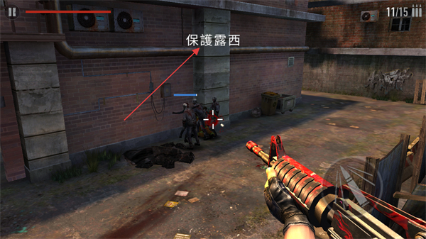 1、根据提示保護露西,用武器射击靠近露西的僵尸,保护她安全。