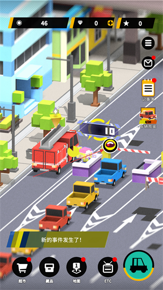1、进入游戏,留意道路车辆,看到新的事件发生了!提示后,关注画面变化。